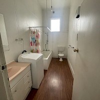 This is the back flat, with a conservatory, heat pump, functional kitchen, Shower over bath and laundry in bathroom.